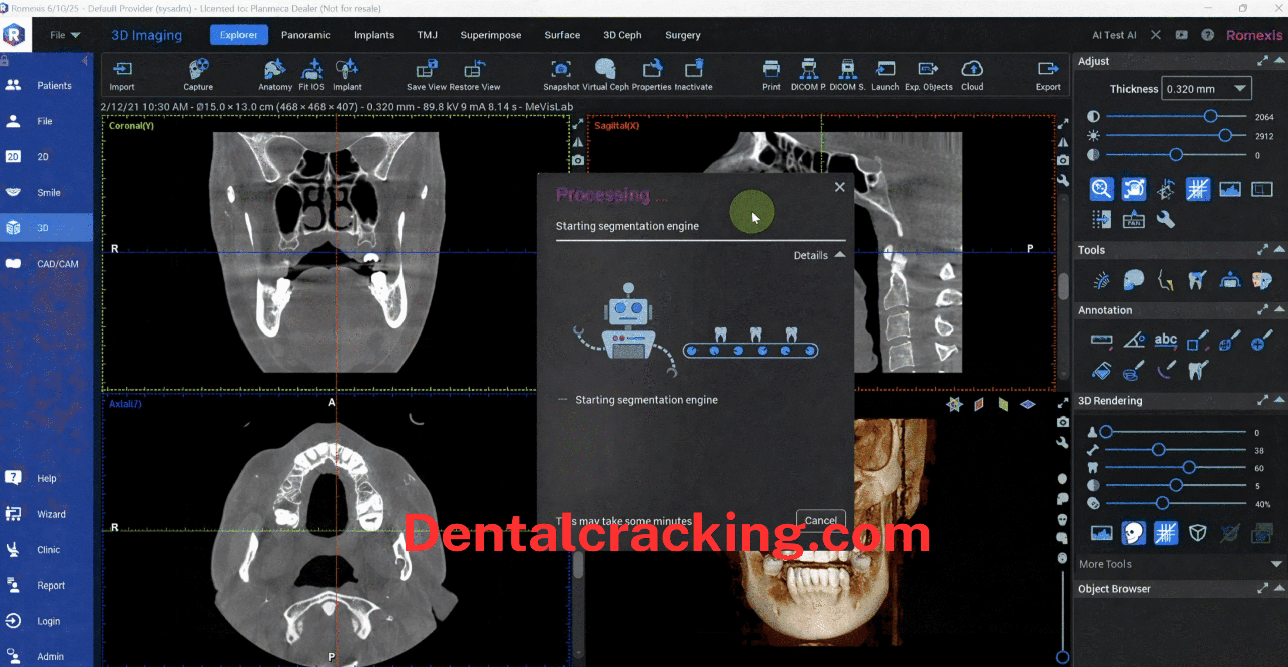 - Planmeca Romexis 7 is an advanced, AI-enhanced dental platform designed to automate everyday tasks and speed up clinical workflows. It includes intelligent tools such as Smart Anatomy for automatic segmentation, Smart Fit for merging CBCT with intraoral scans, and Smart Implant for guided implant planning. Together with its built-in AI Help assistant and VR capabilities, Romexis 7 makes complex procedures—like implant planning and surgical guide creation—faster, smoother, and more intuitive.Key AI-Driven Capabilities in Romexis 7:Smart Anatomy: Automatically detects and segments anatomical structures (e.g., nerve canals, airways) from CBCT images, significantly reducing manual work.